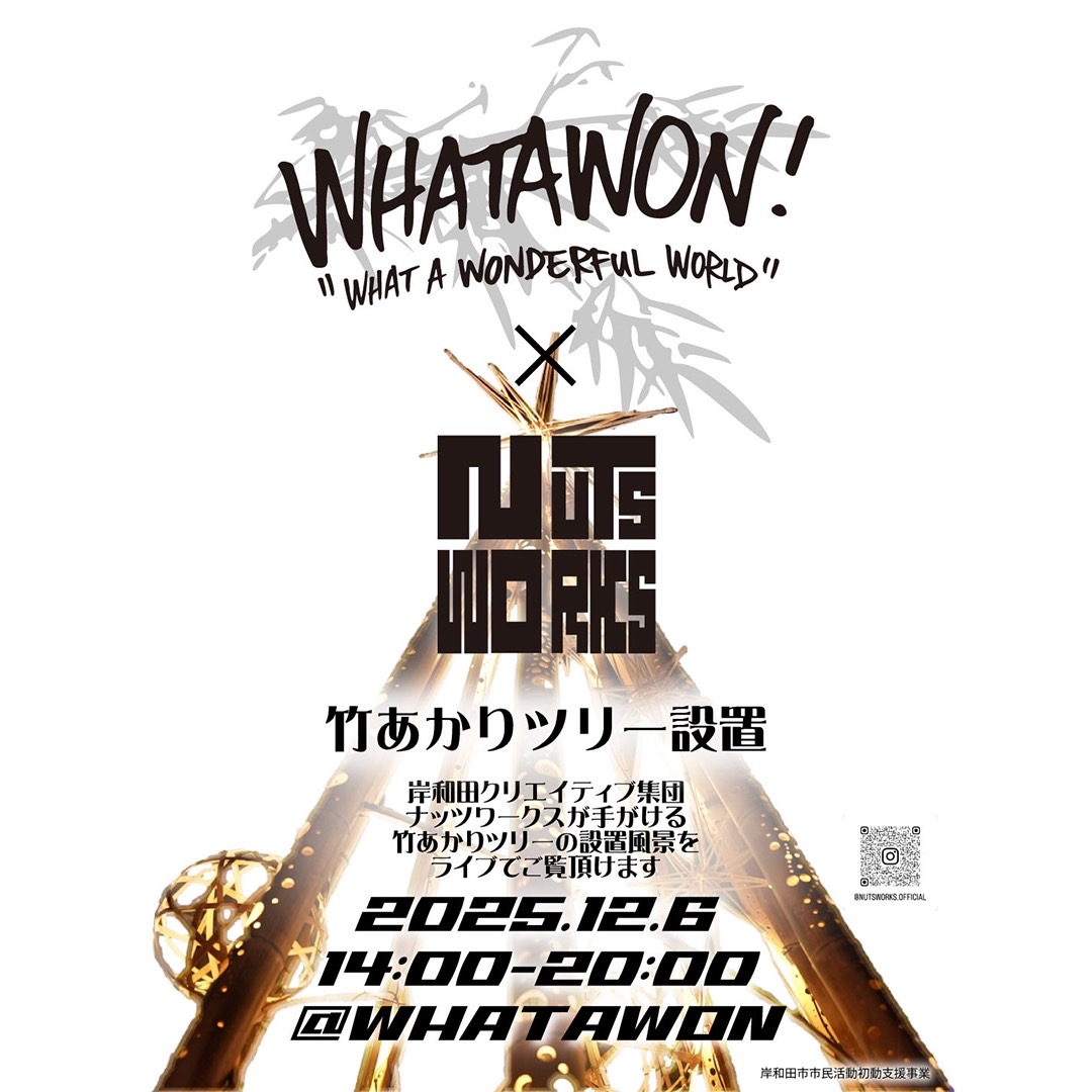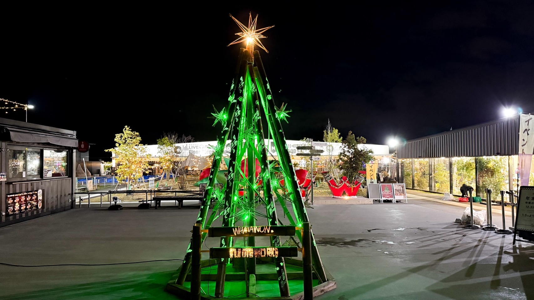 岸和田市ゆめみヶ丘にある『WHATAWON』さんにて竹あかりオリジナルクリスマスツリーを設置しました。