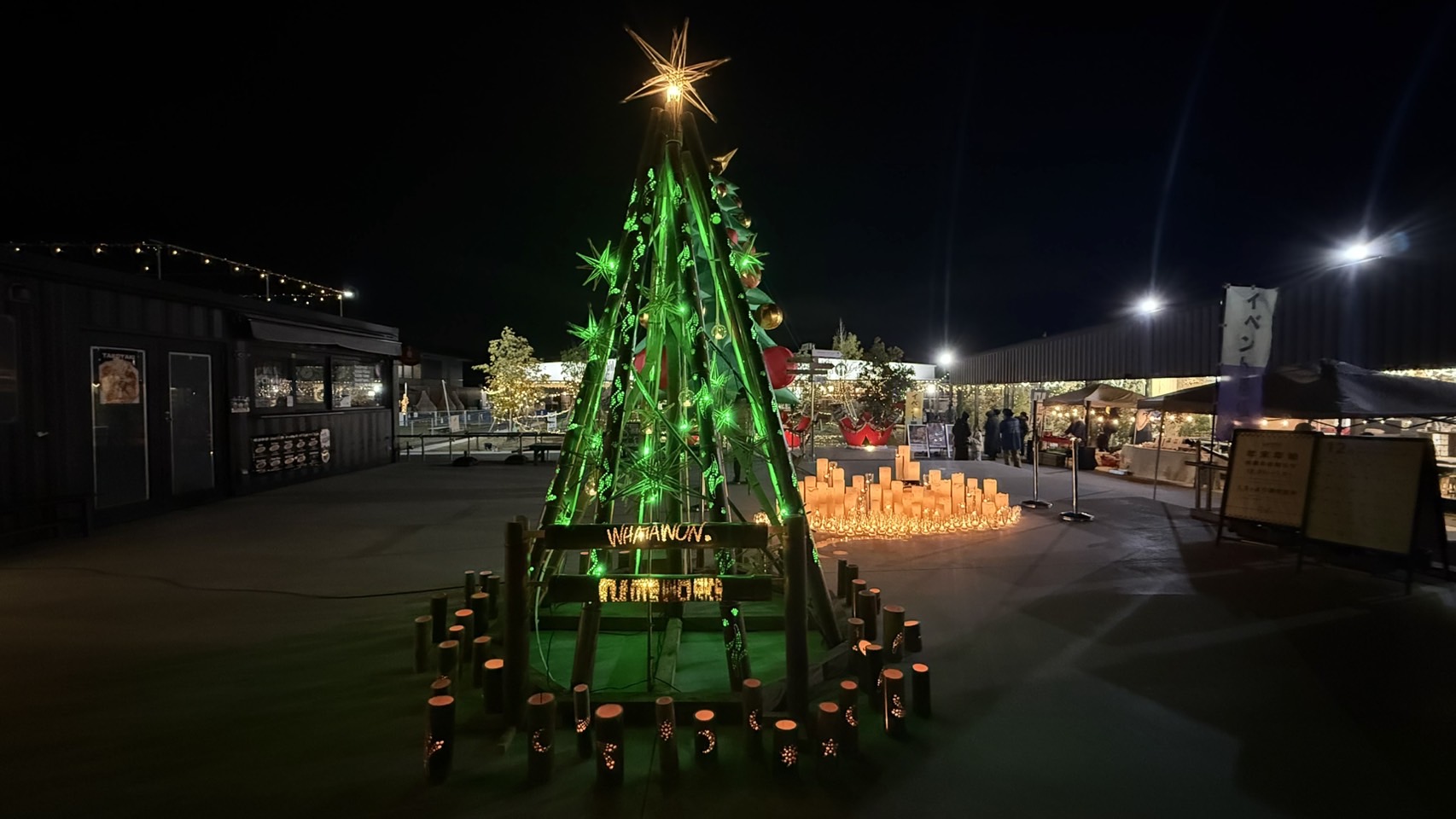 竹あかりツリー 場所:岸和田ゆめみヶ丘『WHATAWON』設置 日時:令和7年12月6日〜1月初旬 ナッツワークス2025の集大成として、『WHATAWON』さんにご協力頂きクリスマスイルミネーションとして竹あかりツリーを制作しました。 https://nuts-works.jp/wp-content/uploads/2025/12/タイムラプス.mp4